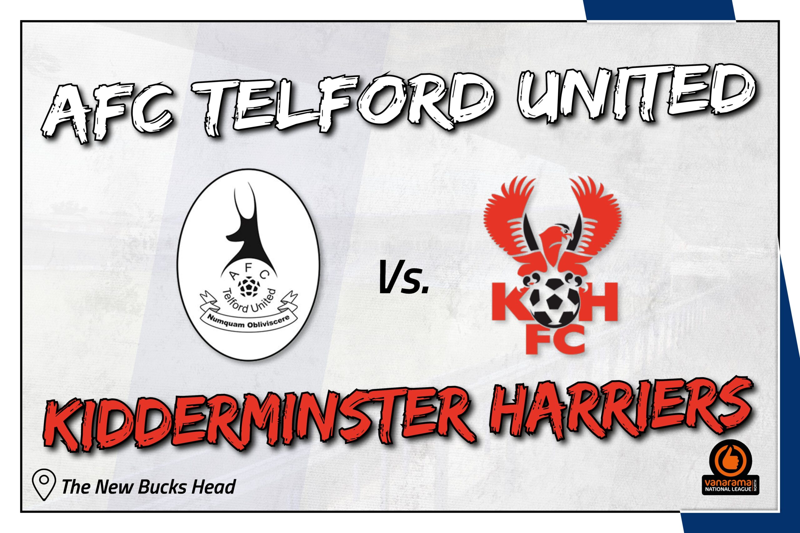 AFC Telford are back in action at the New Bucks Head this Saturday, when title-chasing Kidderminster Harriers will be the visitors.