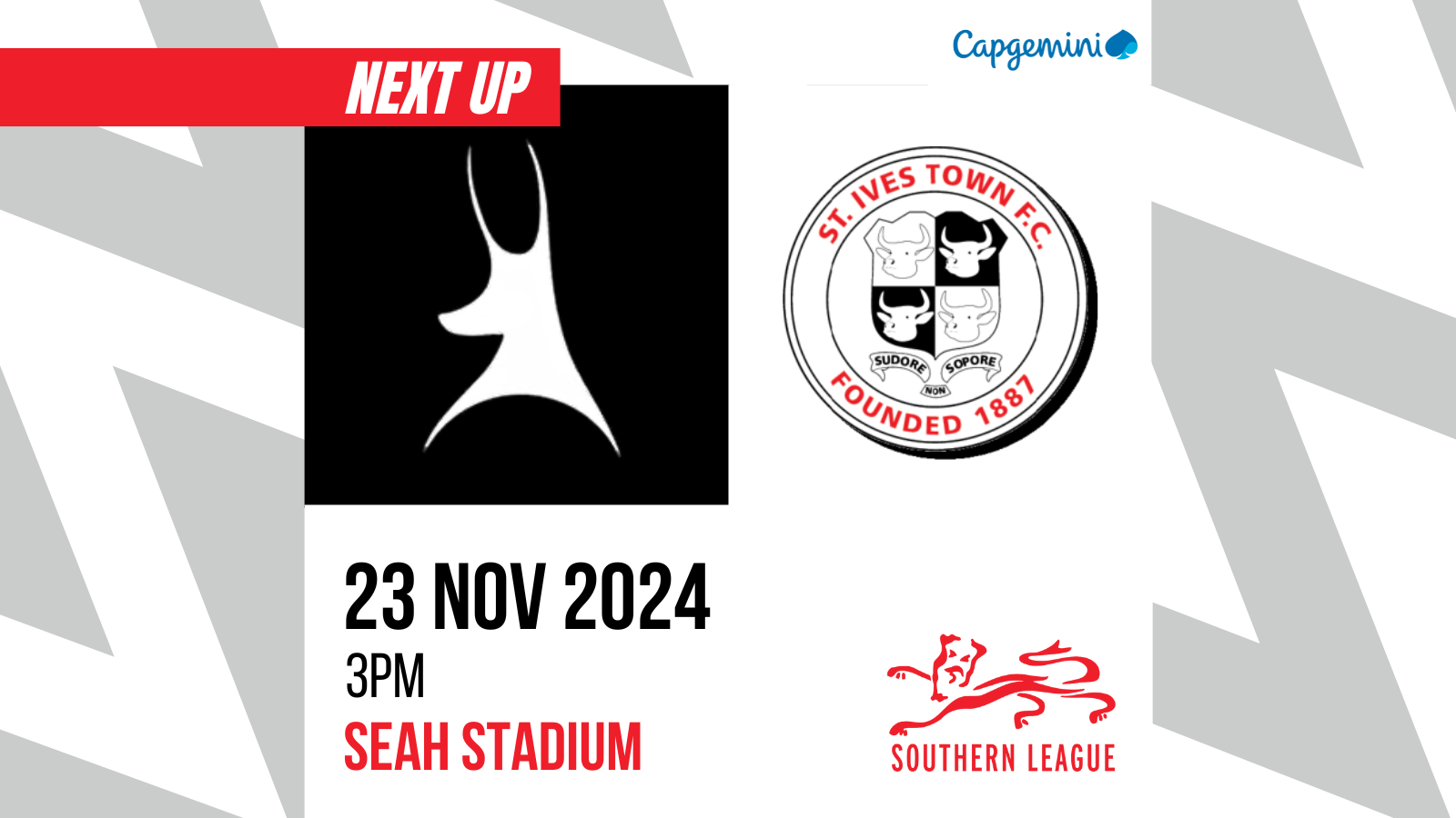 The Bucks are back in league action this Saturday, when St Ives Town will be the visitors to the SEAH Stadium.