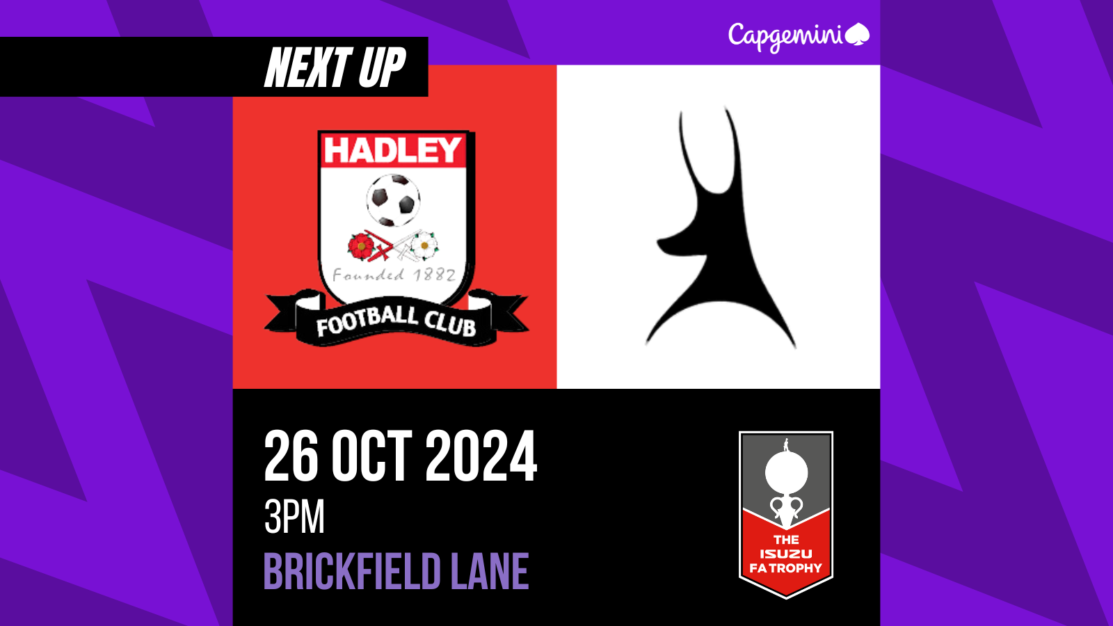 This season is also the Bricks’ best ever showing in the FA Trophy. Hadley have beaten Grays Athletic (2-1), Ipswich Wanderers (4-1), Carshalton Athletic (3-1), and Hastings United (4-3) to progress to this stage.