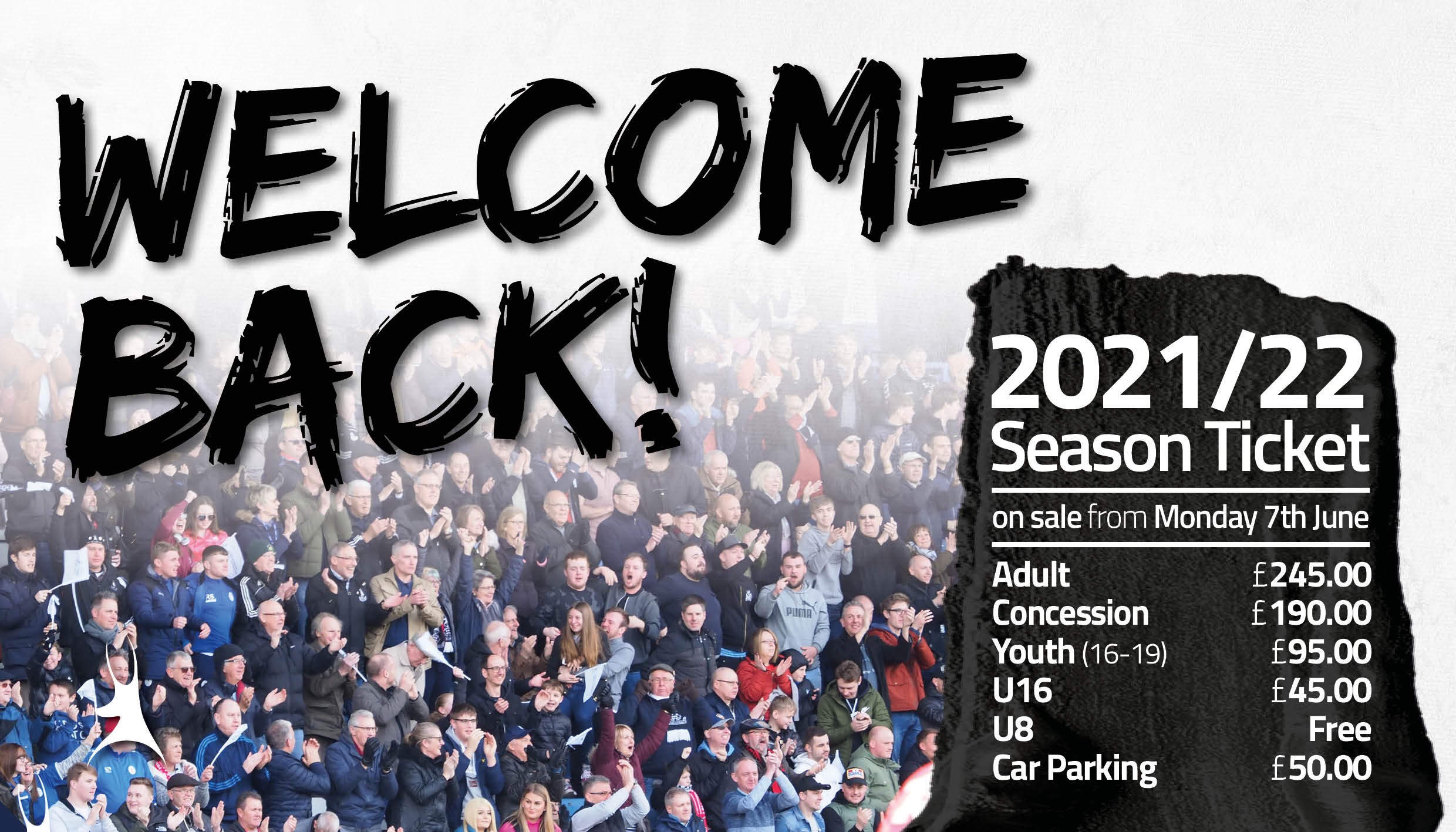 Season Tickets for 2021/22 will be available from Monday 7th June and can be purchased from the Club Office.