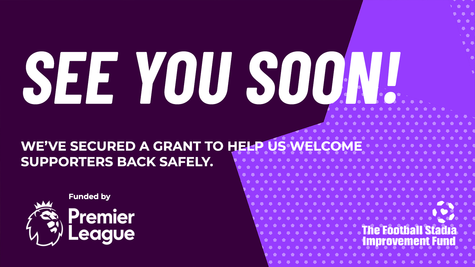 The grant will help the club pay for the increased costs of staging our games, hand sanitisers, PPE, temperature checking, barriers, floor markings transport to games and much more that we need to have in place before we can welcome supporters back to the stadium.
