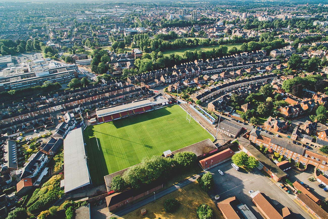 Take the A64 to Scarborough and York. When you near York, join the A1237 Ring Road and continue on it until you reach the junction with the A19. Turn right at the junction and take the A19 towards York City Centre and keep going until you get to a pub on your left called the Burton Stone Inn, at which point you turn left into Burton Stone Lane. Then take the first right into Grosvenor Road for the ground.