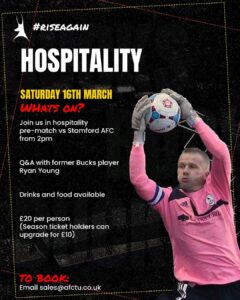 Ryan Young will be our special guest In hospitality for the game, and he is very much looking forward to his return to the New Buck’s Head.