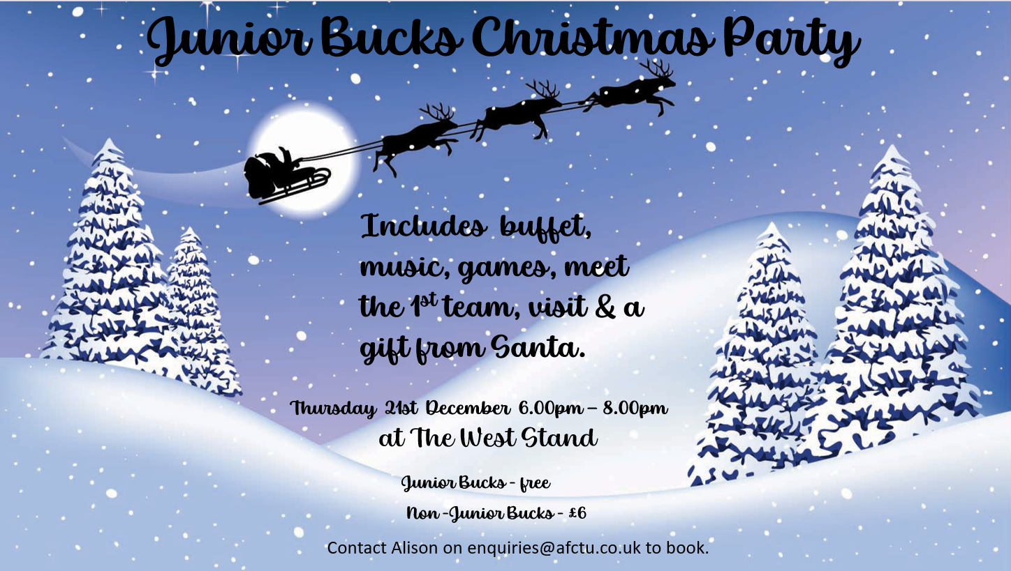 The Junior Bucks Christmas Party is now open to non-members but you need to book early to avoid disappointment.
