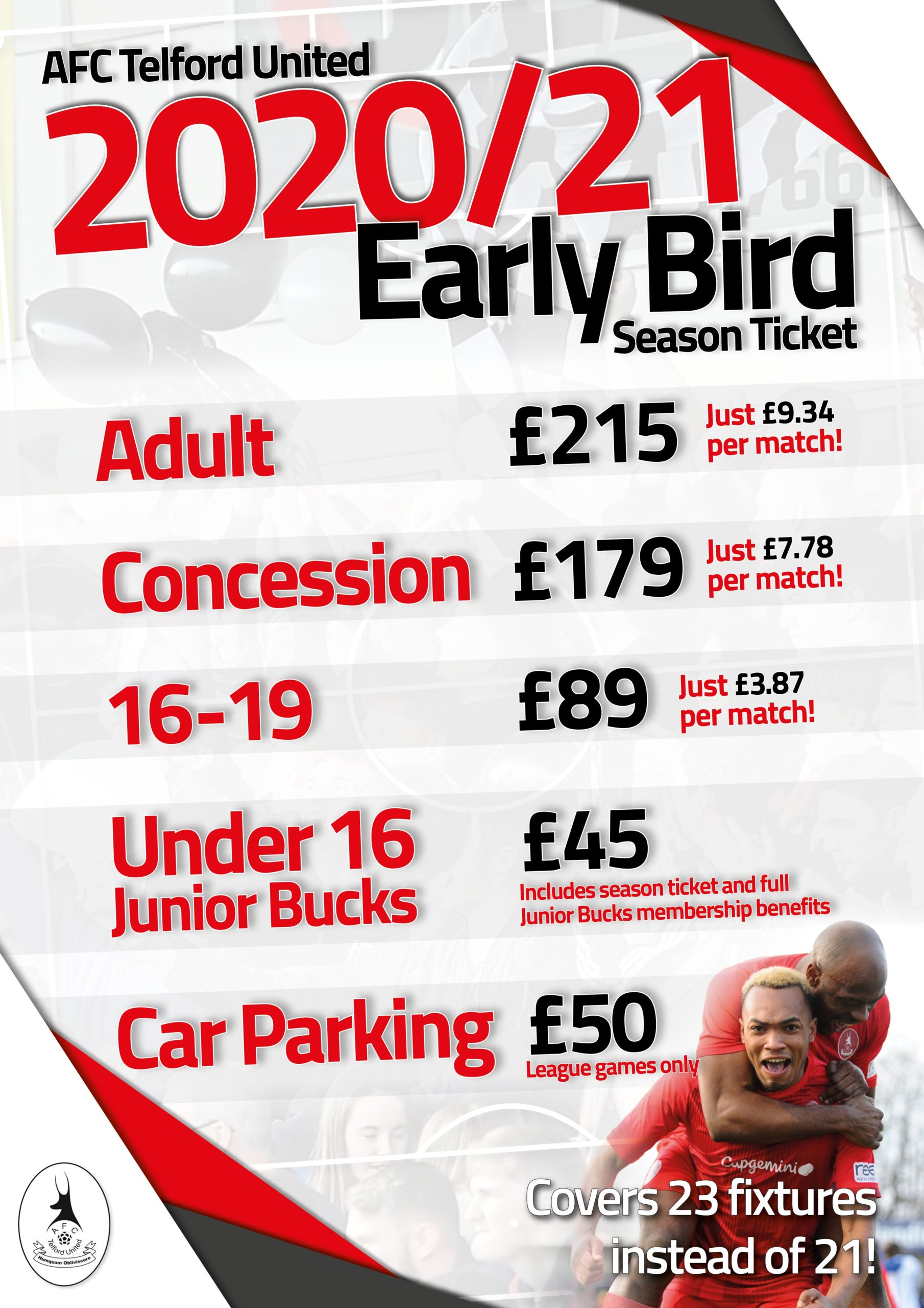 The Early Bird Season Ticket offer will remain open until Tuesday 31st March, please click here for full details https://www.telfordunited.com/news/early-bird-season-tickets-for-season-2020-21/