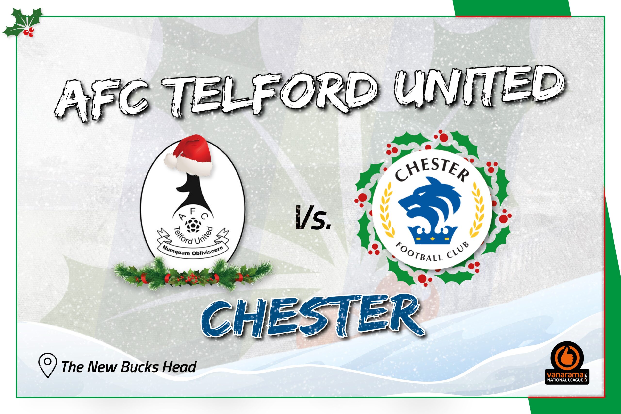 AFC Telford United welcome Chester to the New Bucks Head on Boxing Day. The fixture will be segregated so Chester supporters will be housed in the Frank Nagington Stand.