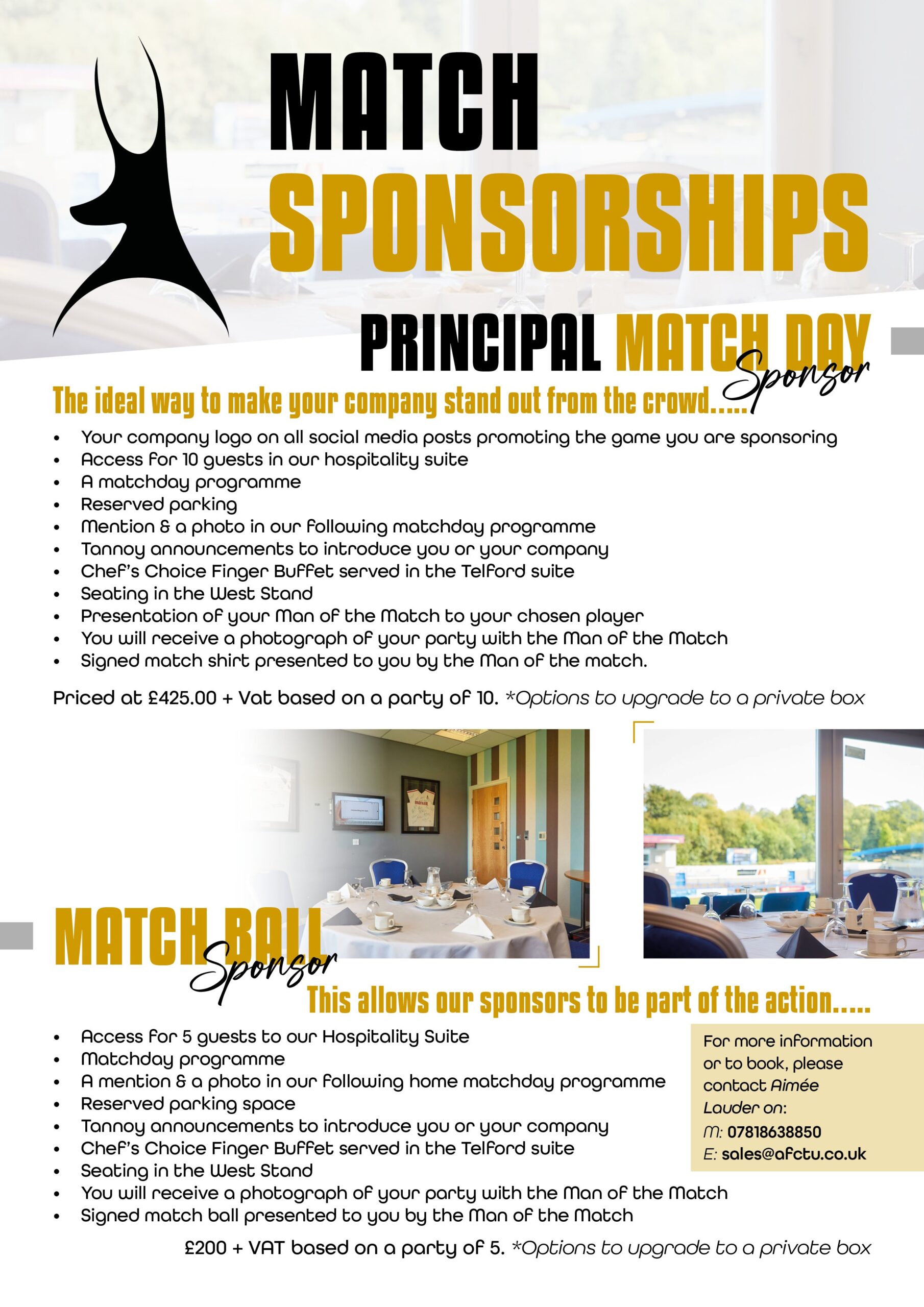 AFC Telford United are now taking booking’s for Match Sponsorship for our upcoming home fixtures at the New Bucks Head.