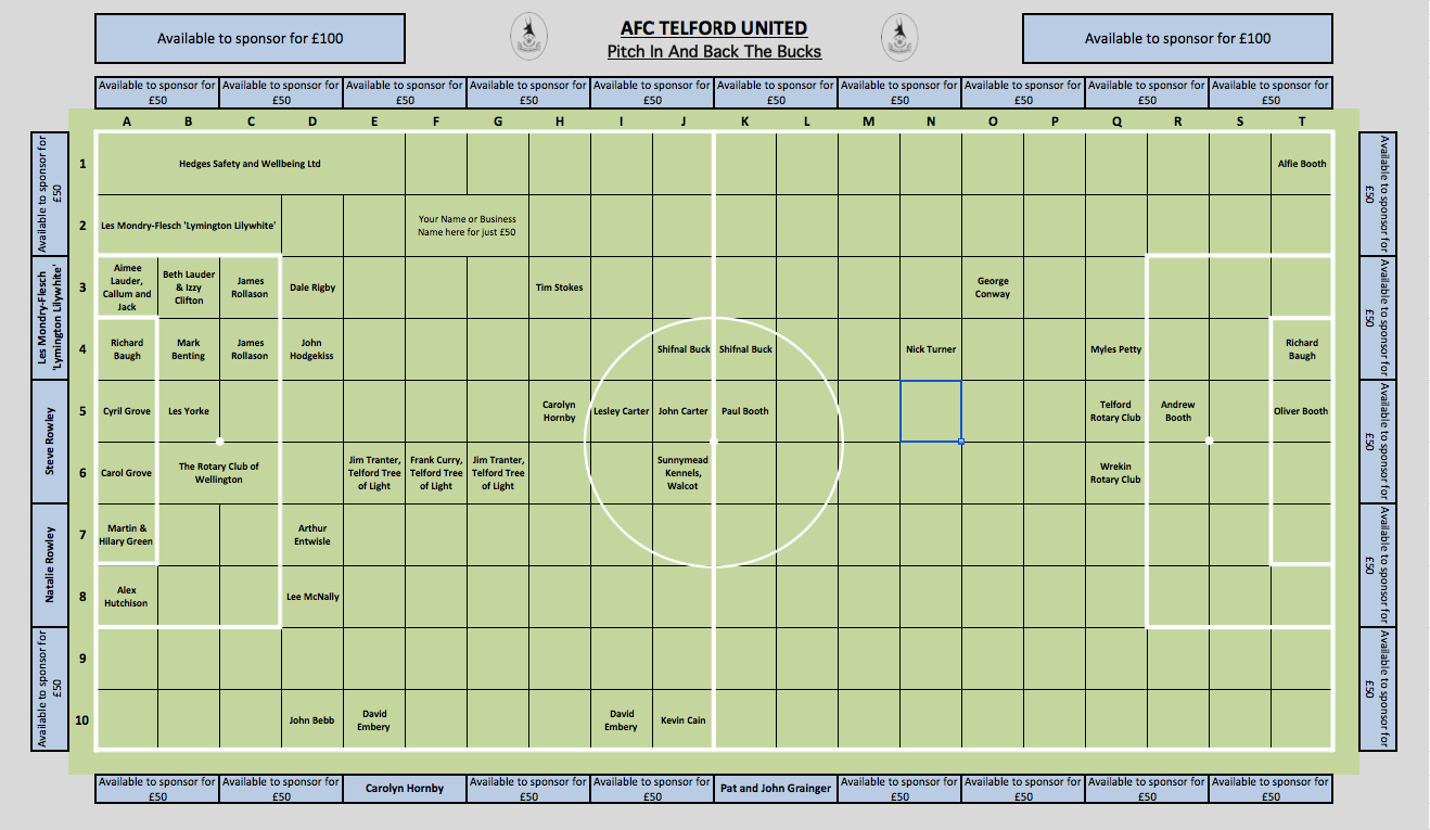 AFC Telford United pitch sponsorship is on offer once again in 2020/21 season — with a prize offered to one lucky purchaser.