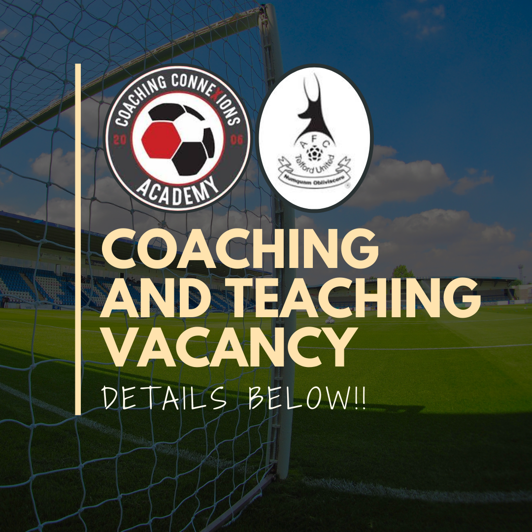We are looking for a dynamic individual to assist our teaching and coaching staff in the delivery of the education and football provision for our AFC Telford United and Coaching Connexions students. Are you game for it?